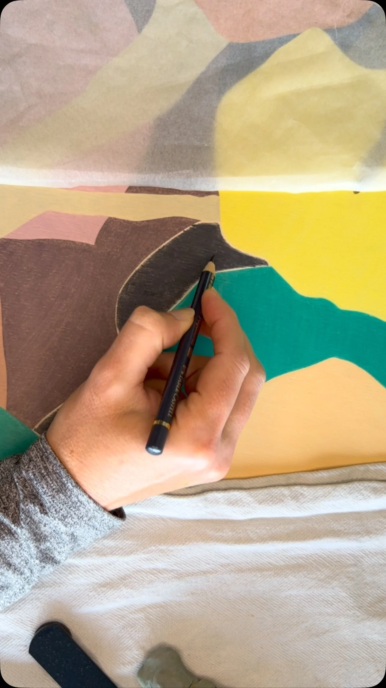 Striking colour artworks in pencil and textile mediums